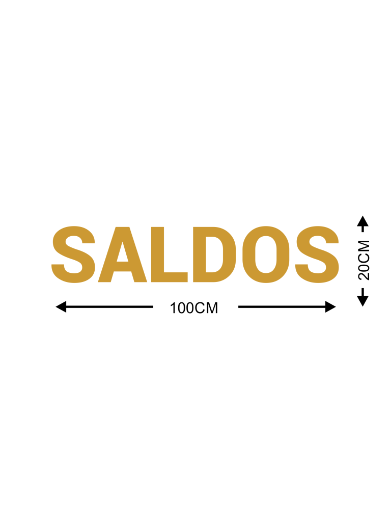 Letras recortadas em vinil autocolante dourado, com 100x20cm. Fornecido com película de transporte.