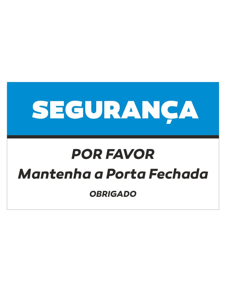 - Design profissional: A mensagem "Segurança: Por Favor Mantenha a Porta Fechada" está em destaque, com cores e fontes fáceis de ler.