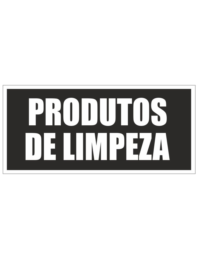 Placa identificativa com a inscrição "Produtos de Limpeza", ideal para sinalizar armários, prateleiras, arrecadações ou zonas específicas de armazenamento. Ajuda a manter a organização e segurança em espaços onde são guardados detergentes e outros produtos químicos.