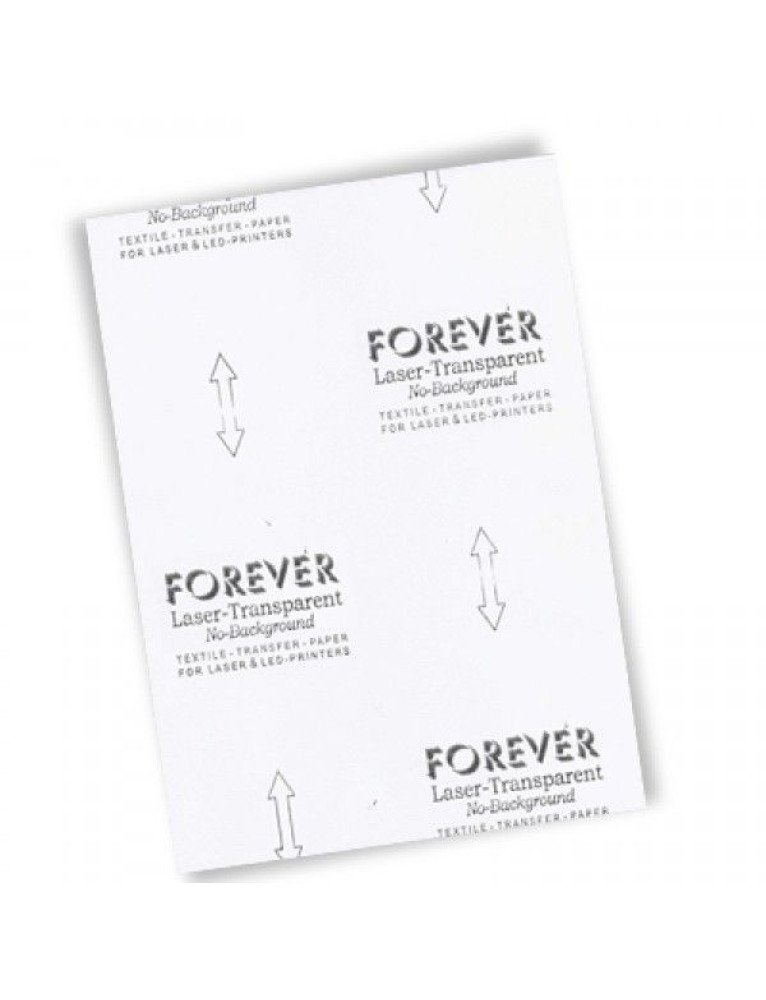 O Papel Transfer FOREVER Laser-Transparent A3 (Branco) é um papel de transferência de alta qualidade, desenvolvido para impressoras a laser e destinado a têxteis de cores claras. Este papel permite a impressão de gráficos vetoriais com uma intensidade de cor mínima de 70% em t-shirts e outros materiais têxteis claros, sem a necessidade de corte ou remoção de excessos, graças à sua tecnologia de auto-remoção.