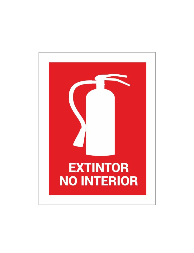- Visibilidade: Design claro e informativo, com o texto "Extintor no Interior" em destaque.