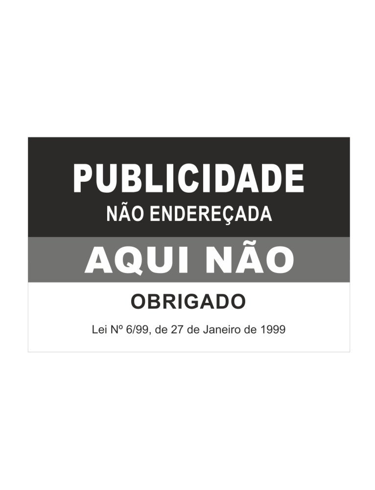 Mantenha a sua caixa de correio livre de folhetos e publicidade não desejada com o autocolante "Publicidade Não Endereçada Aqui Não". Este autocolante de 75x50 mm, assegura que a sua mensagem seja clara e respeitada.