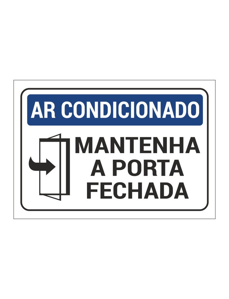 - Mensagem clara e visível: "Ar Condicionado - Mantenha a Porta Fechada", com ícone ilustrativo.