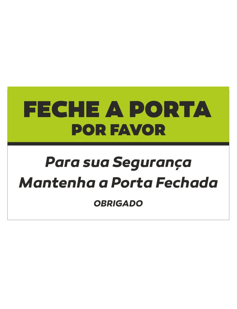 - Mensagem educada e eficaz: Lembrete claro para manter portas fechadas e promover organização e segurança.