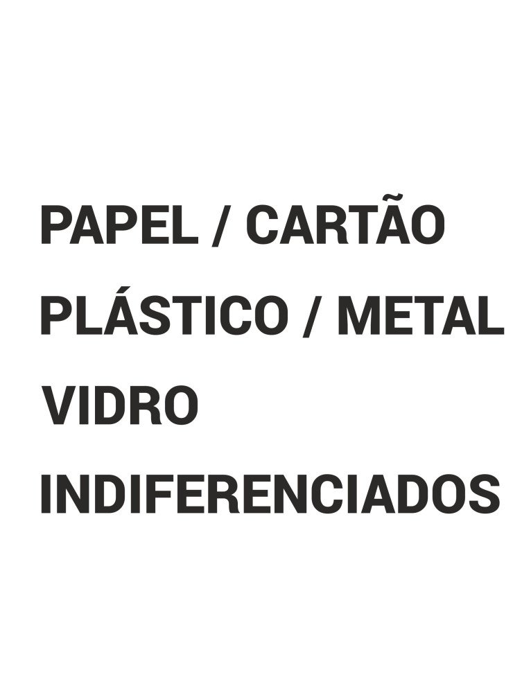 Este kit de vinil recortado foi especialmente desenvolvido para facilitar a separação do lixo reciclável nos Ecopontos. Com adesivos de alta qualidade, você pode identificar facilmente as categorias de resíduos: Papel/Cartão, Plástico/Metal, Vidro e Indiferenciados.