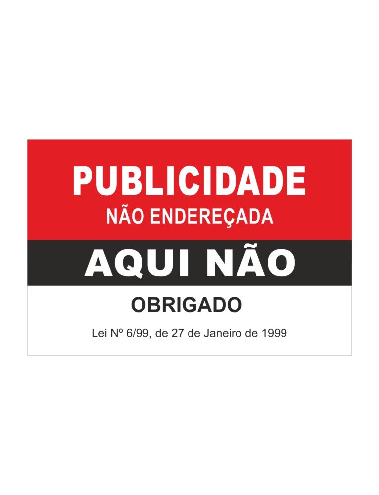 Autocolante 75x50mm Publicidade Não Endereçada Aqui Não