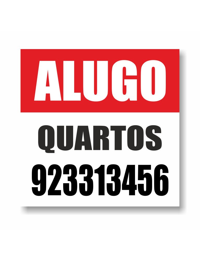 Placa "Alugo Quartos" em PP Alveolar – 50x50cm – Vermelho, Branco e Preto