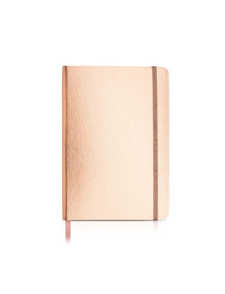 Bloco de notas A5, capa brilhante. Um bloco clássico com uma cor moderna. Tamanho A5, com 160 páginas lisas. Folhas com 70g, com elástico, bolso e fitilho incluĂdos.