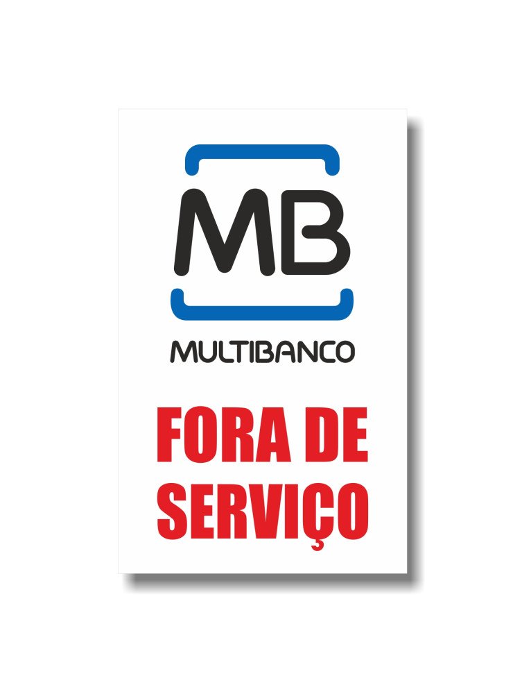 - Mensagem Clara: Texto "Multibanco Fora de Serviço" em destaque para fácil identificação por clientes e usuários.